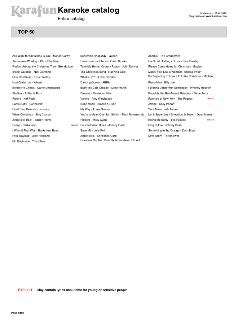 Karaoke Catalog Updated On 01/10/2019 Sing Online on Entire Catalog