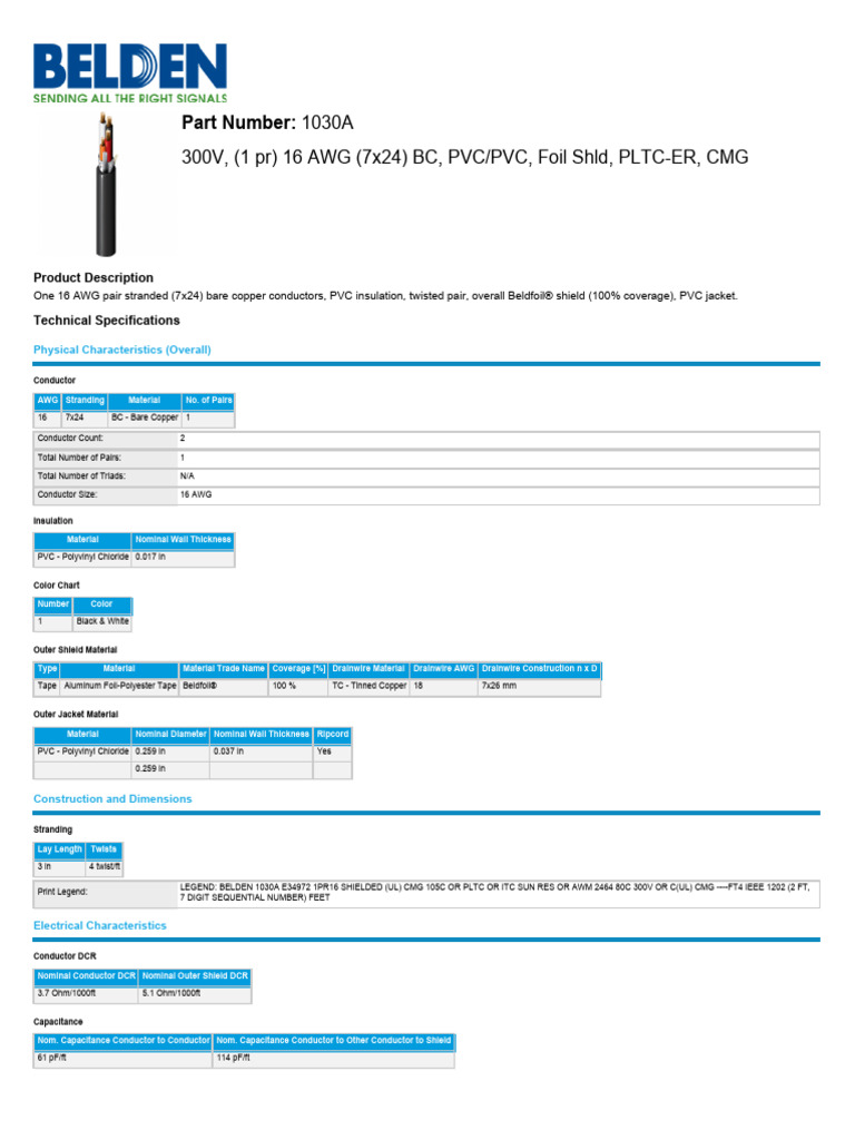 KABEL 1030A 16 AWG 305 BELDEN Belden 1030A 16AWG ECatalogue