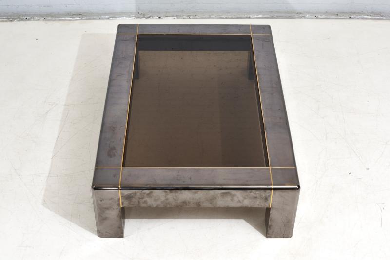 Karl Springer Karl Springer Rare Gunmetal and Glass Coffee Table, 1980