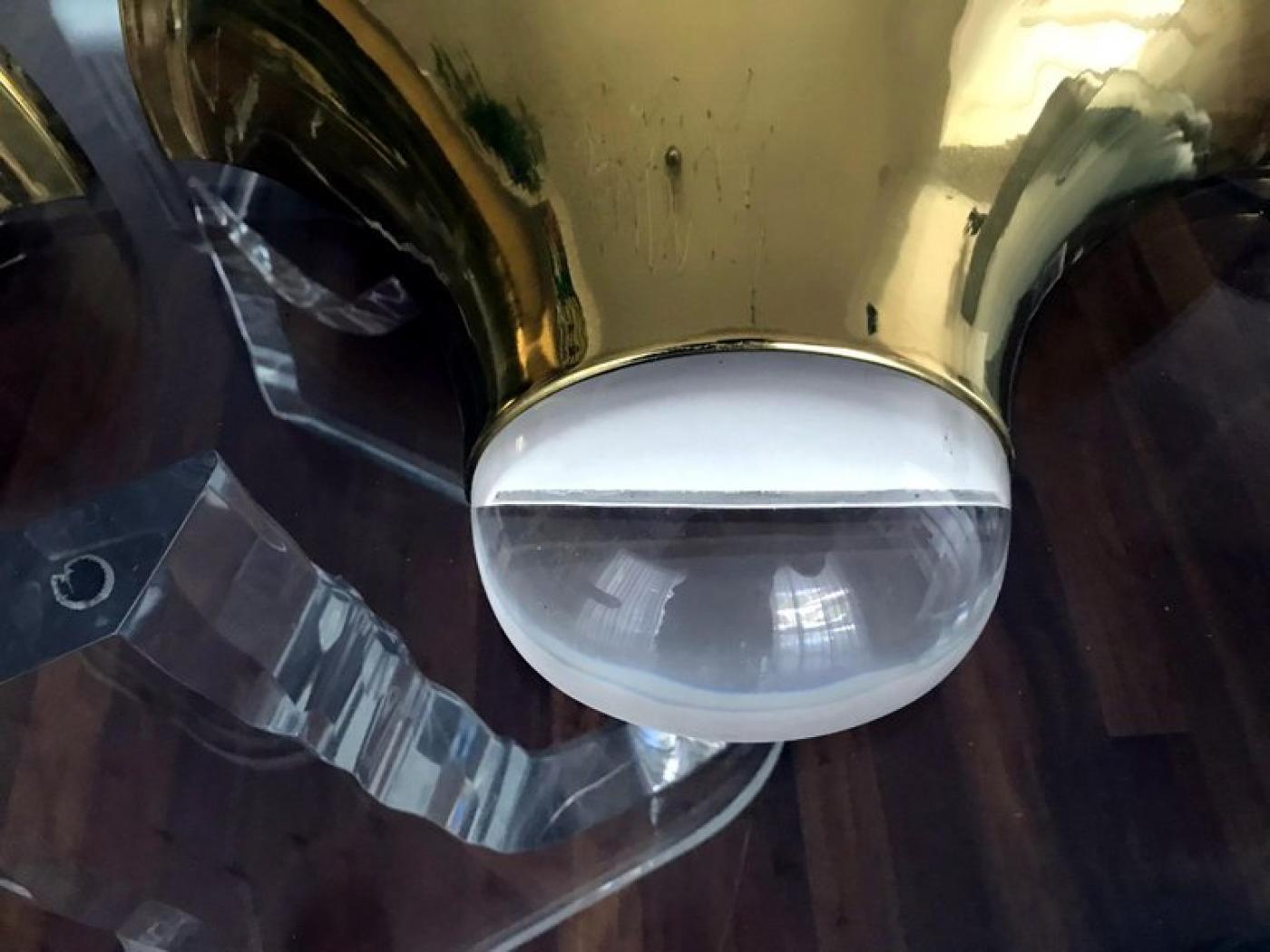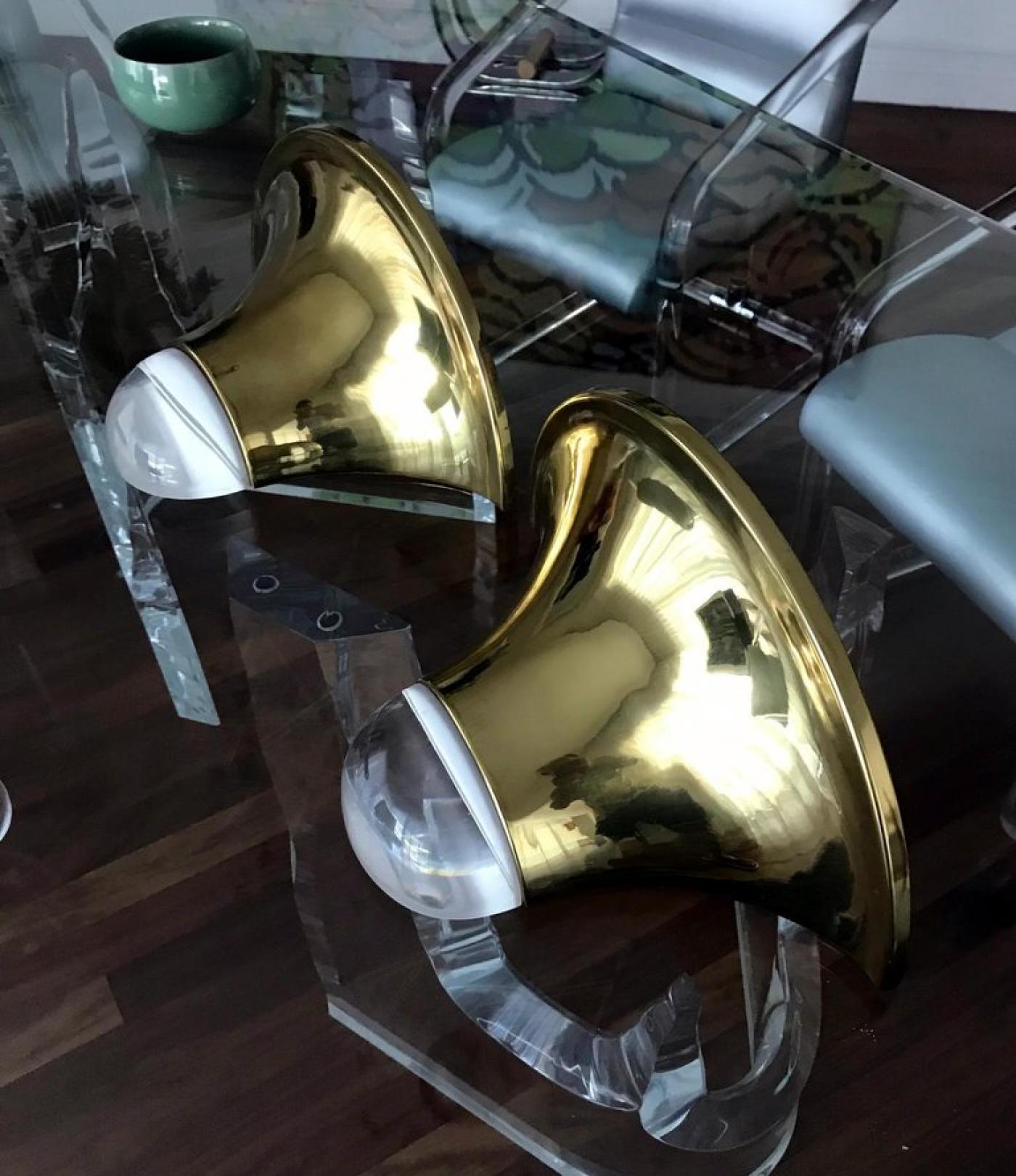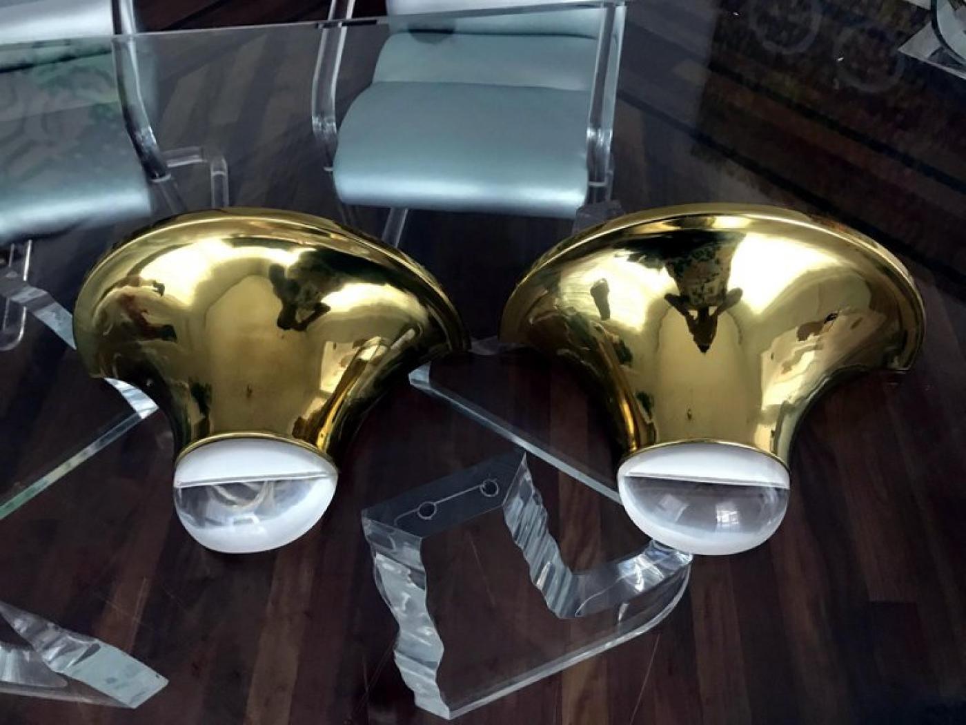 Karl Springer Pair of Brass and Lucite Tulip Sconces by Karl Springer