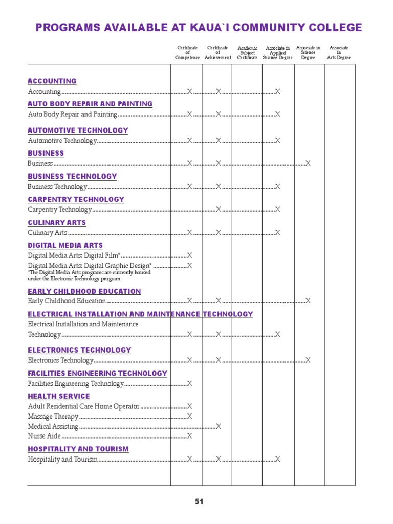Programs Available at Kaua'I Community College PDF Associate Degree