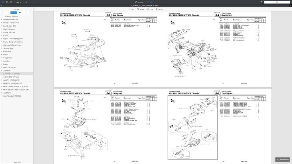 KAWASAKI VERSYS KLZ 1000 (20152018) SERVICE MANUAL + PARTS