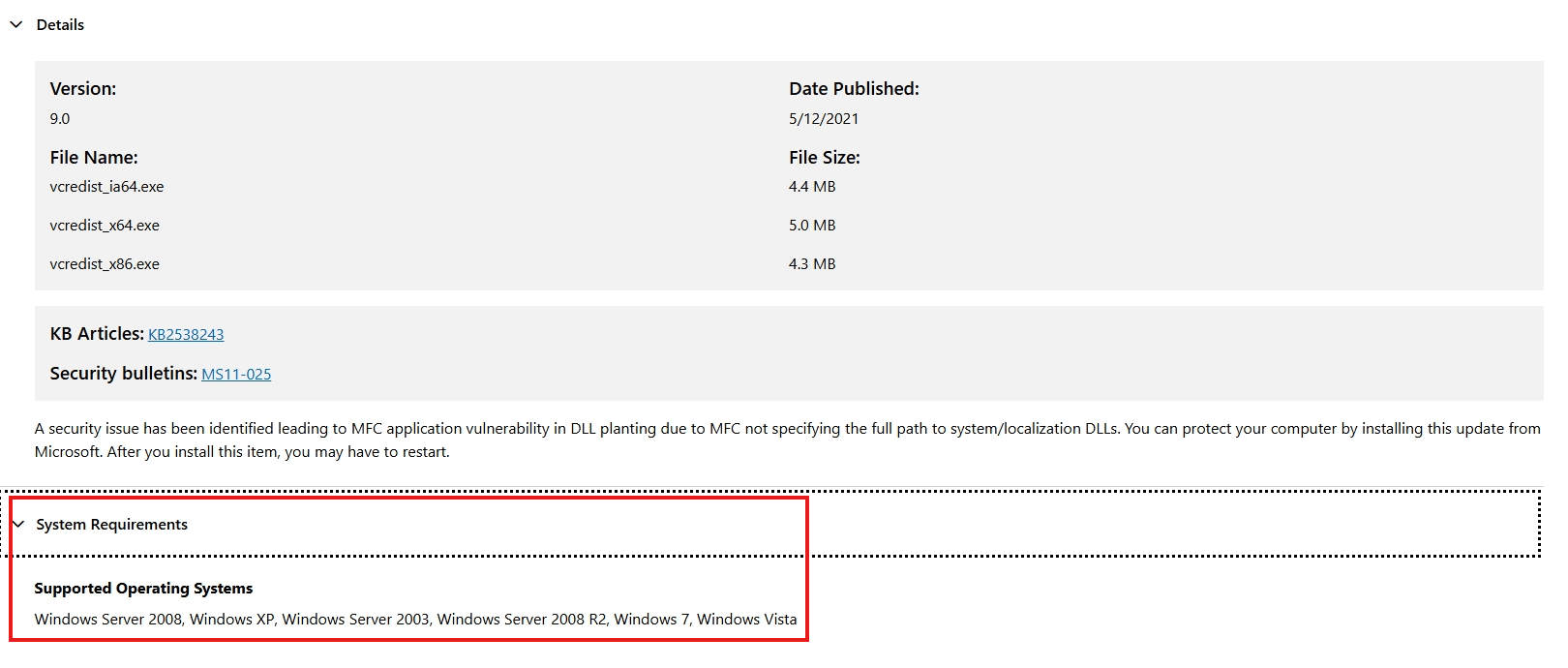 Security Update for Microsoft Visual C++ 2008 Service Pack 1