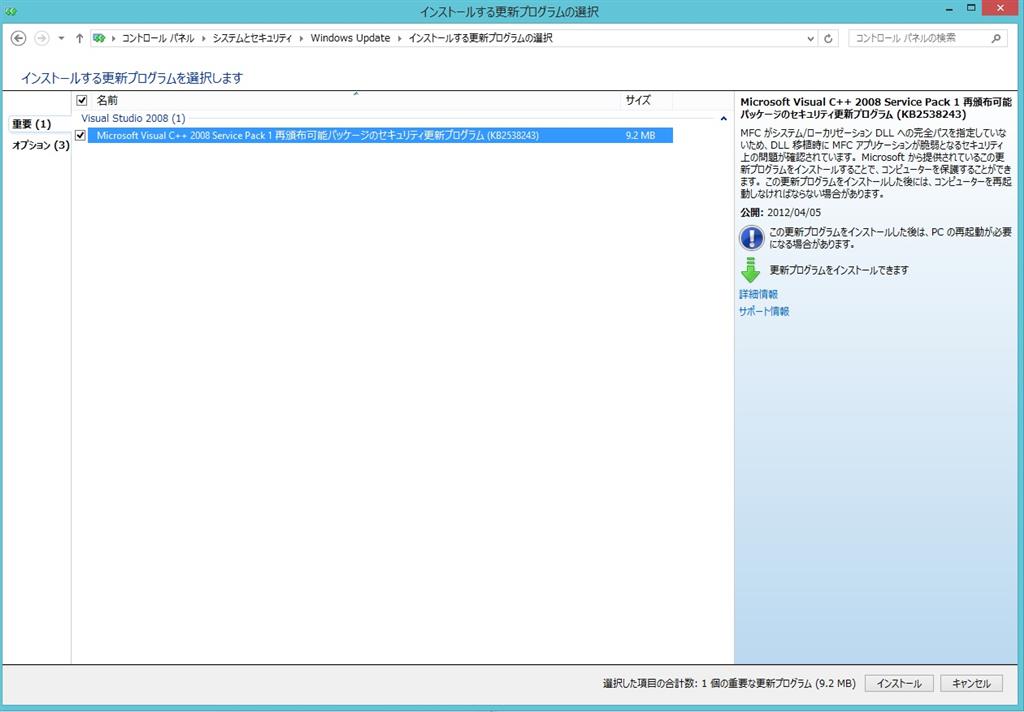 Microsoft Visual C++ 2008 (KB2538243)のインストールに失敗する場合の対処にたすちゃんメモ