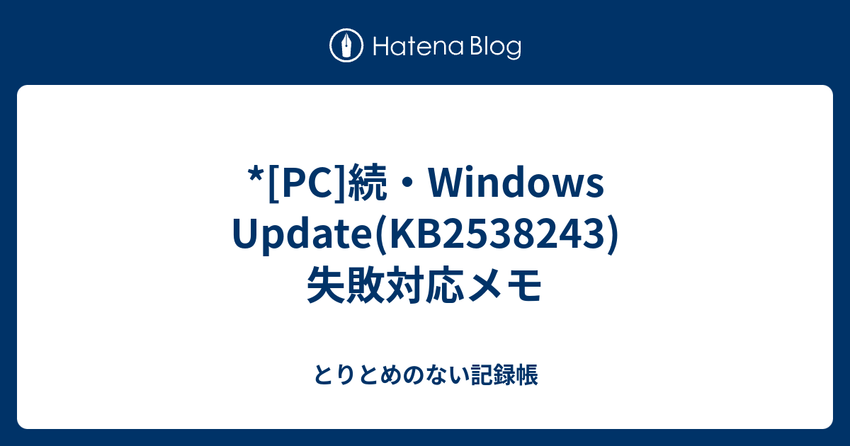 *[PC]続・Windows Update(KB2538243)失敗対応メモ とりとめのない記録帳
