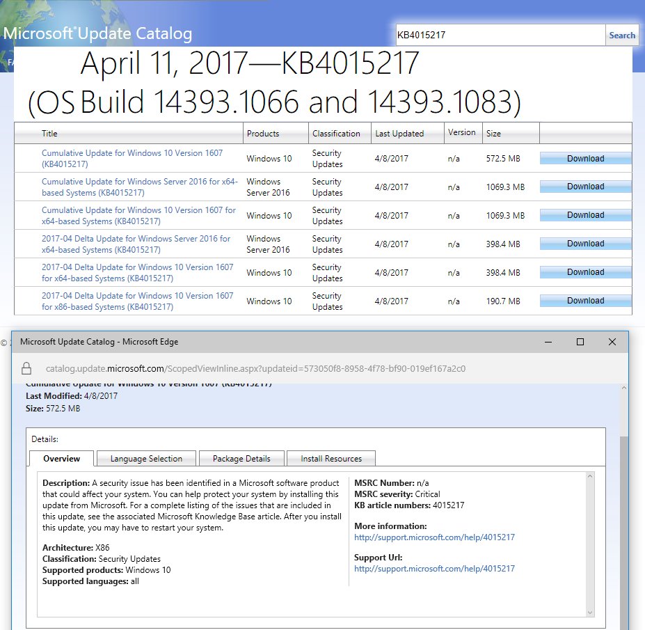 WZor on Twitter "April 11, 2017—KB4015217 (OS Build 14393.1066 and