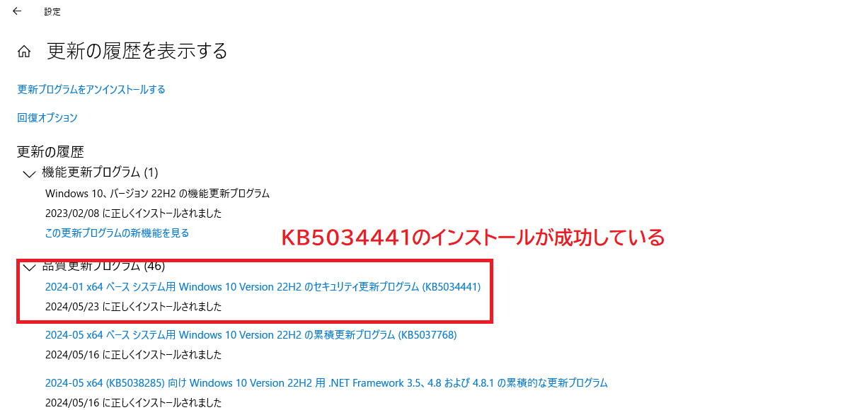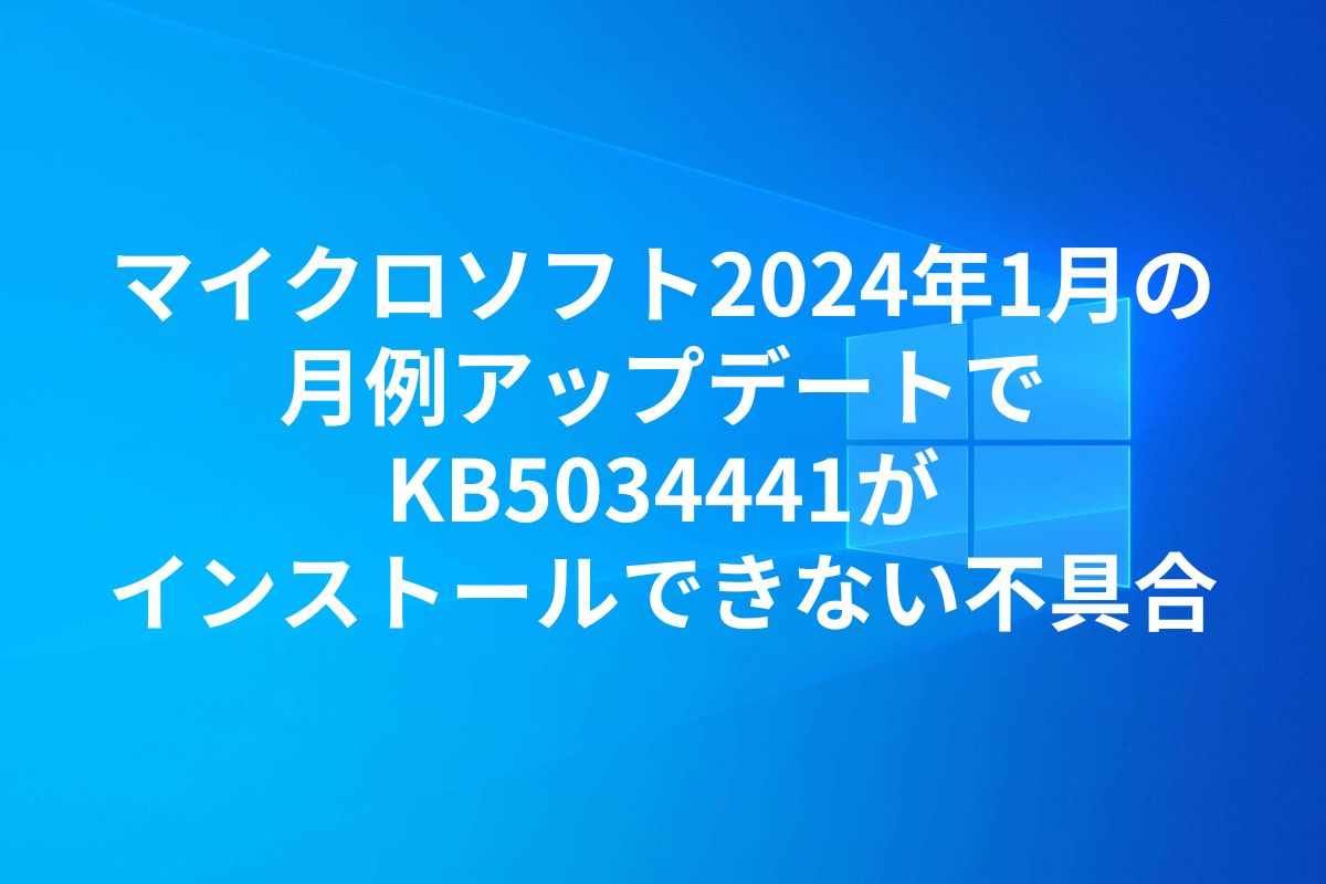Windows更新プログラム「KB5034441」公式より提供終了とのこと
