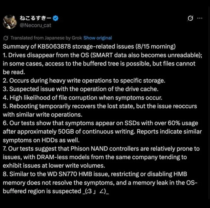 Windows KB5063878更新 可能在大量数据写入后硬盘故障 前沿快讯 LINUX DO
