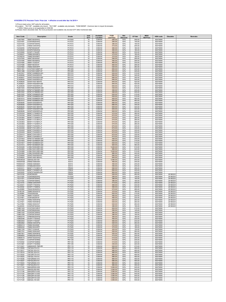 KCPT Price List Moq 100 (CP) 20190401 PDF Business