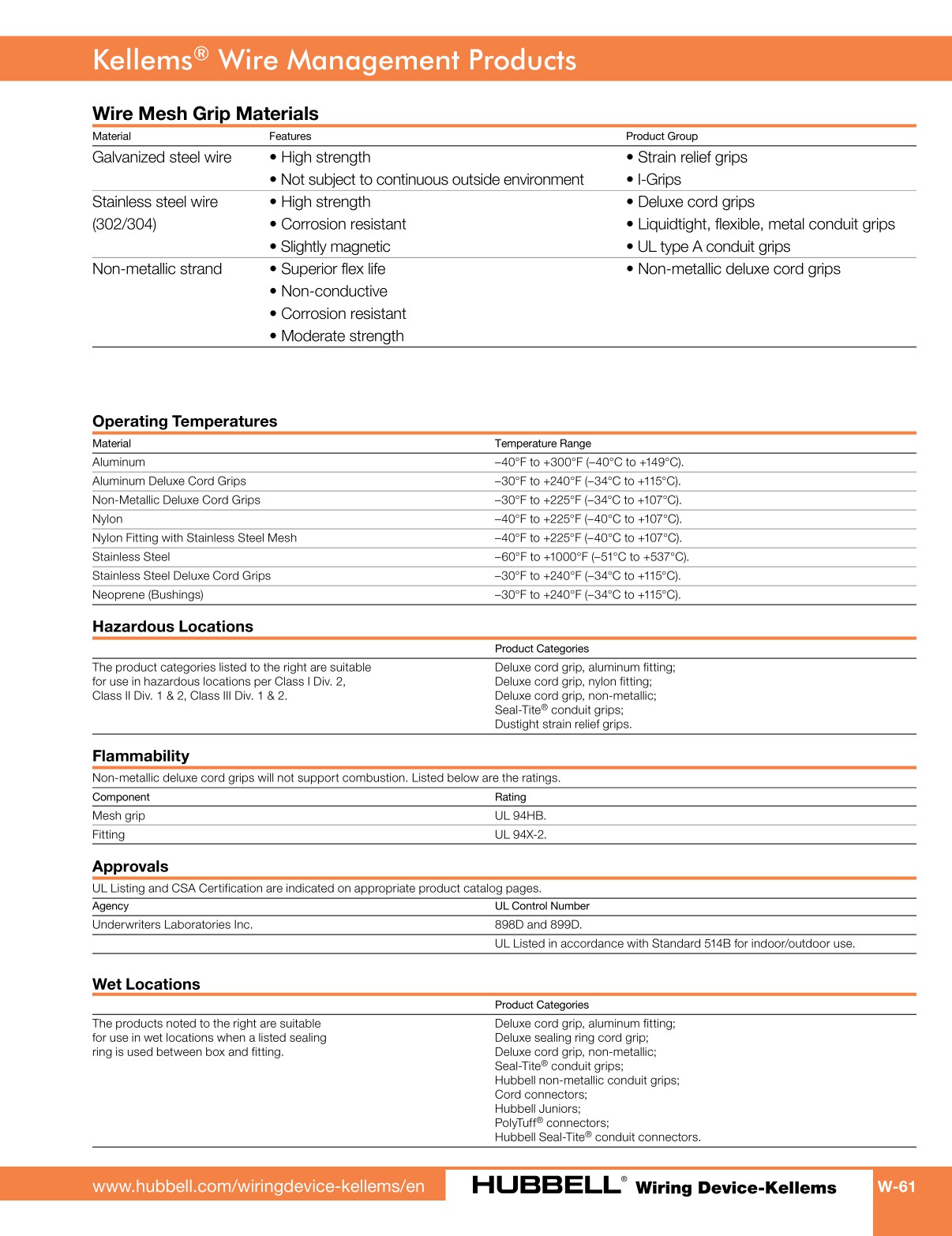 Hubbell Wiring Device Kellems Wire Management Products 102637 Catalog