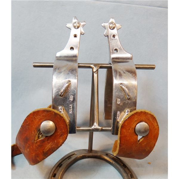 Kelly spurs, chromed 315, marked & pair of bull riding spurs