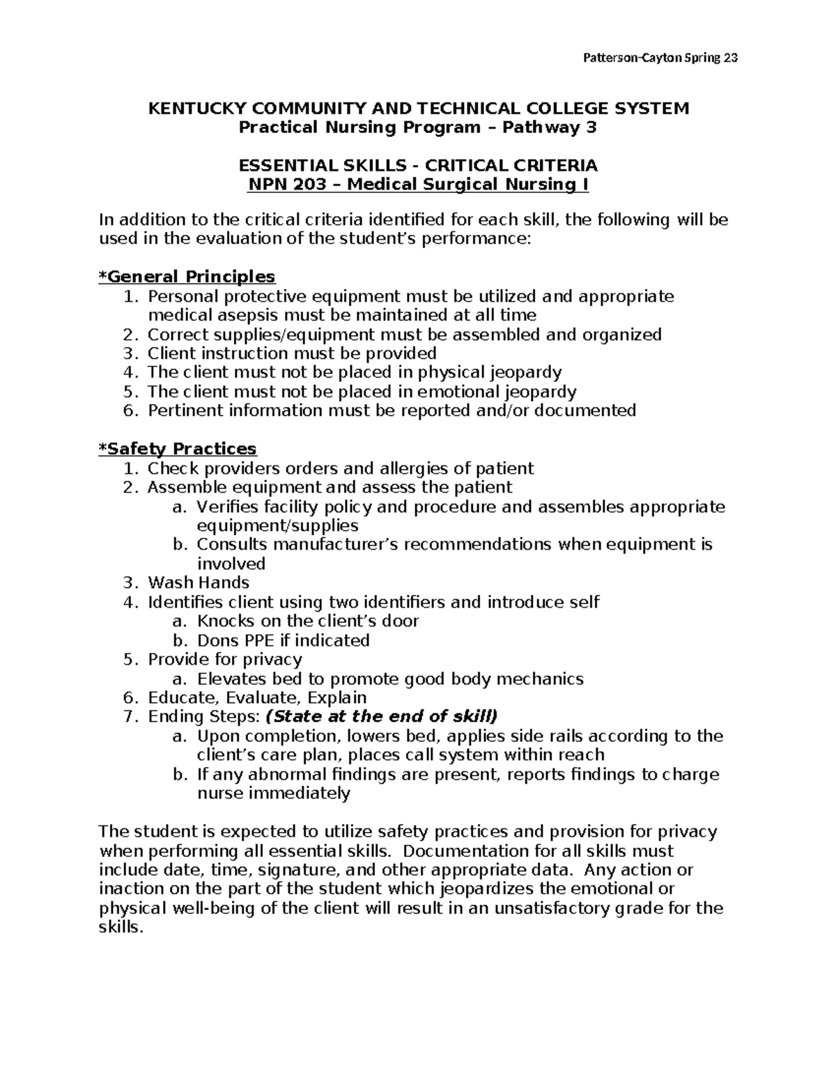 Trach Skill Check Off KENTUCKY COMMUNITY AND TECHNICAL COLLEGE SYSTEM