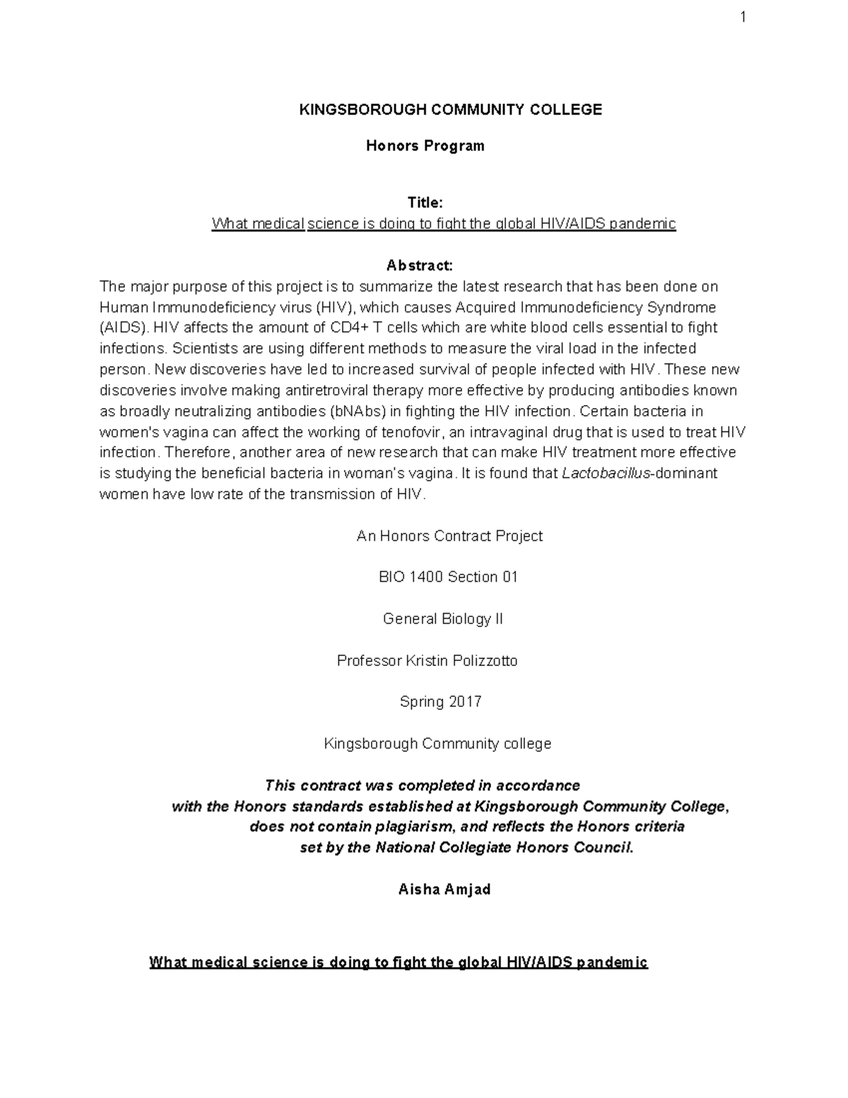 Kingsborough Community College KINGSBOROUGH COMMUNITY COLLEGE Honors