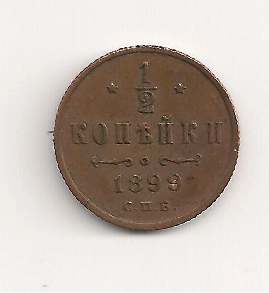 1899 RUSSIAN EMPIRE 1/2 Kopeck Copper Coin Catalog KM48.1 CZAR