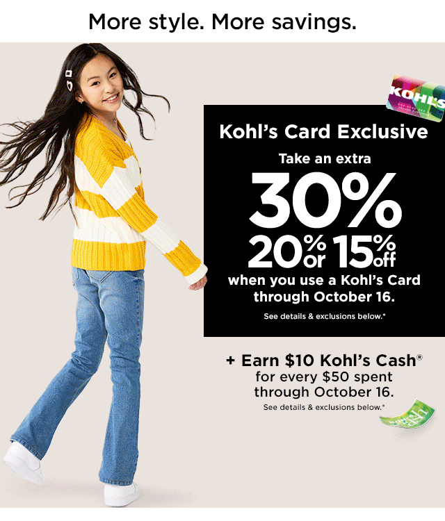Kohl's Take 30, 20 or 15 off! Plus, shop fall favorites that bring
