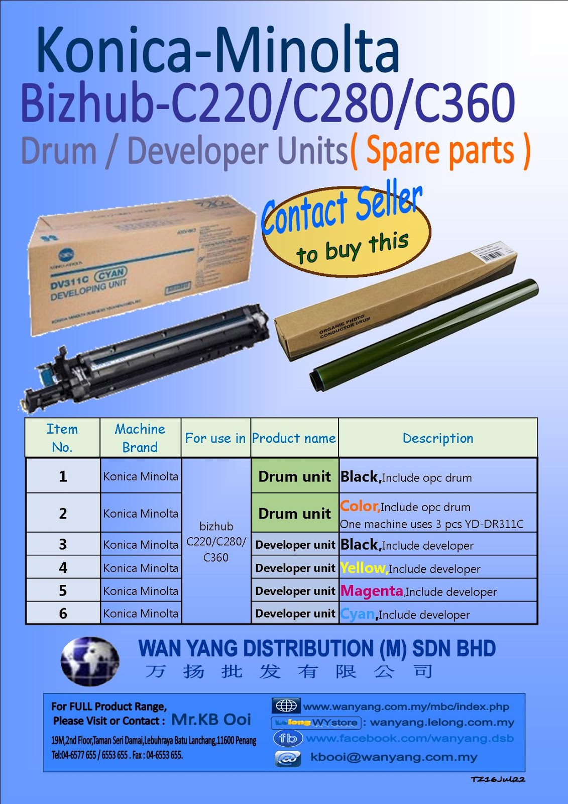 KonicaMinolta BizhubC220/280/360 Drum/Developer Units( Spare parts )