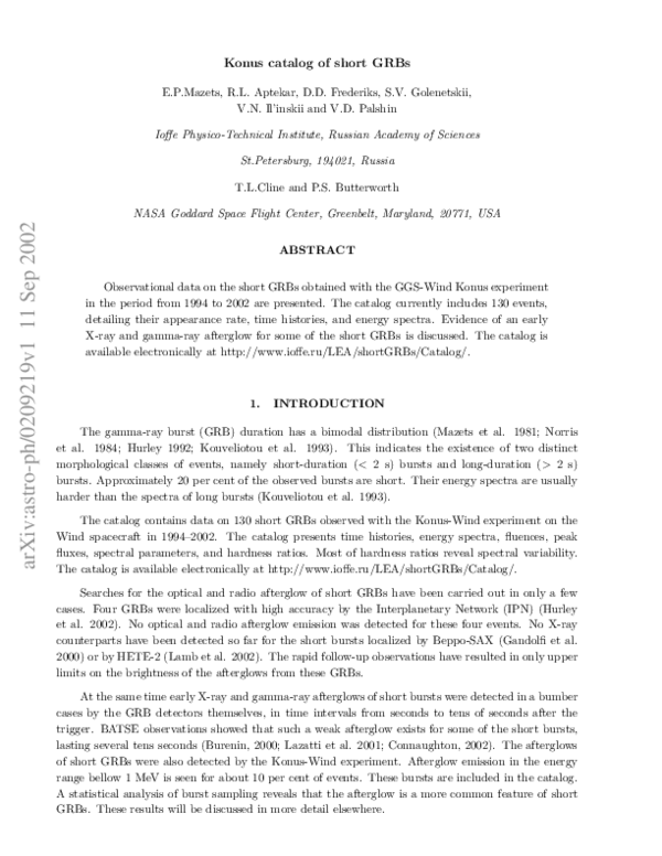 (PDF) Konus Catalog of Soft Gamma Repeater Activity 1978 to 2000