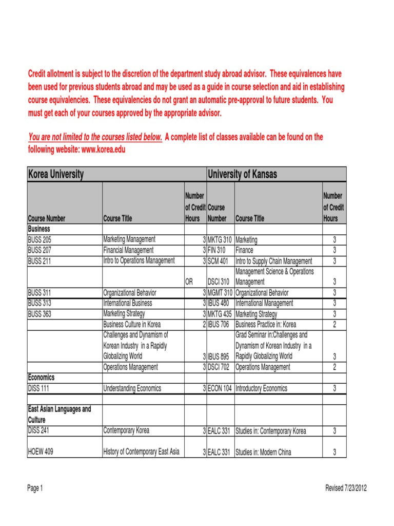 Korea University Course Equivalencies Updated 7.12 PDF Linguistics