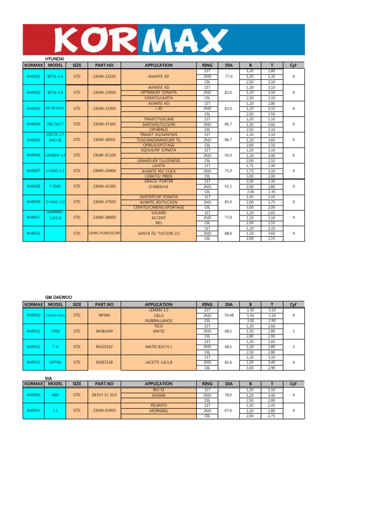 Kormax Koltsa Porshnevyie Kormax PDF Motor Vehicle Manufacturers