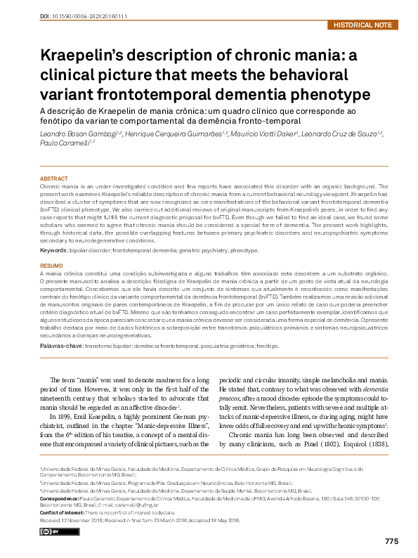(PDF) Kraepelin's description of chronic mania a clinical picture that