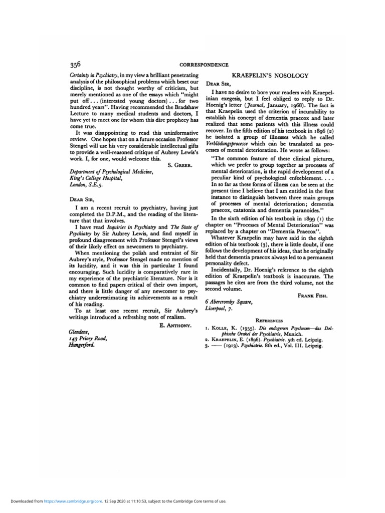 Frank Fish Kraepelin Nosology PDF Psychiatry Mental Health