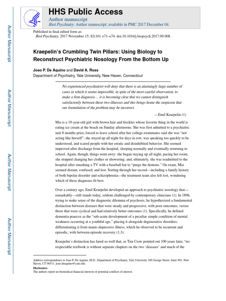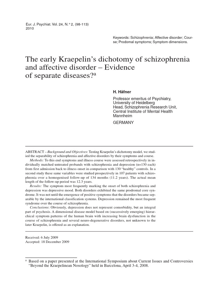 (PDF) Too soon to discard Kraepelin improving diagnosis by appropriate