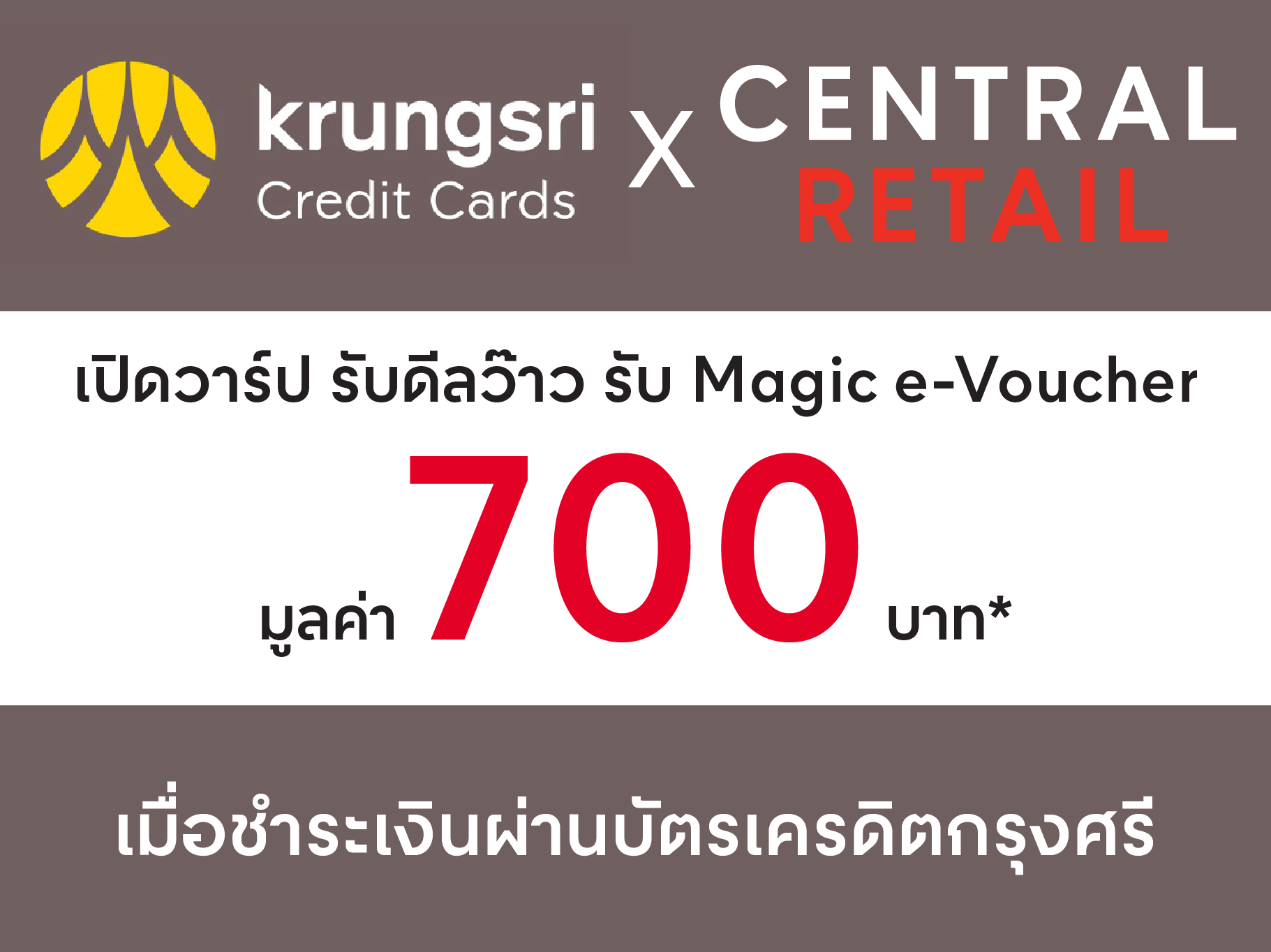 Central Retail X Krungsri Credit Card รับ Magic eVoucher 700 บาท