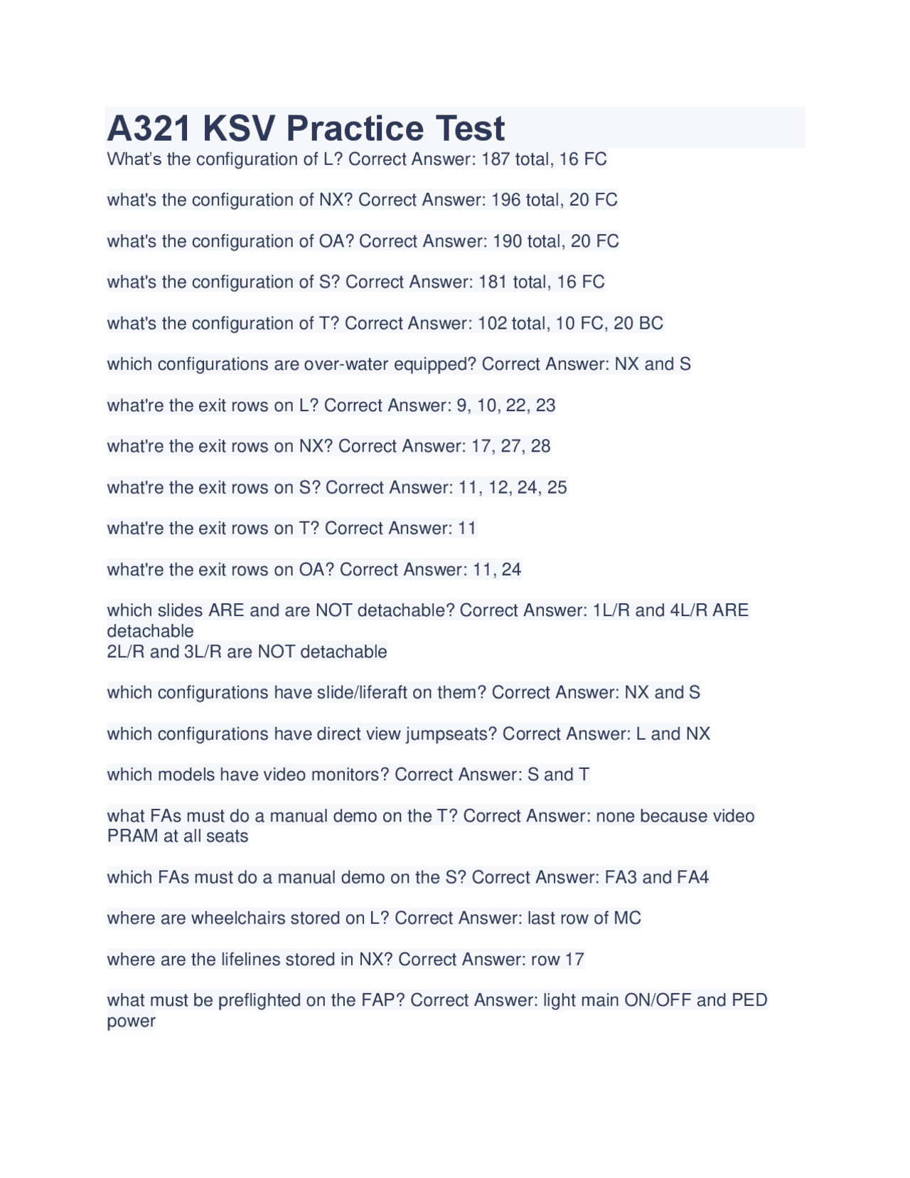 A321 KSV Practice Test Questions With Verified Answers Exams Advanced