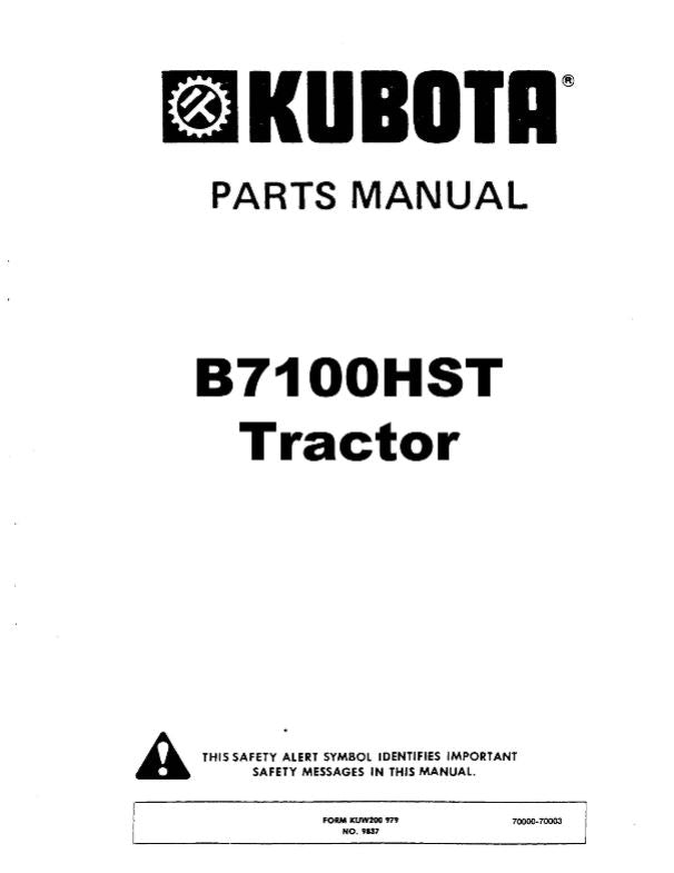 Kubota B7100HstD Old Type Tractor Service Repair Manual Parts Catalog