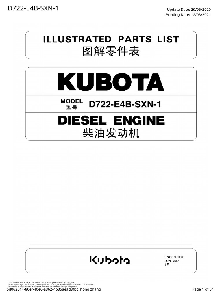 KUBOTA D722 ENGINE MASTER PARTS MANUAL Download Manuals & Tec...