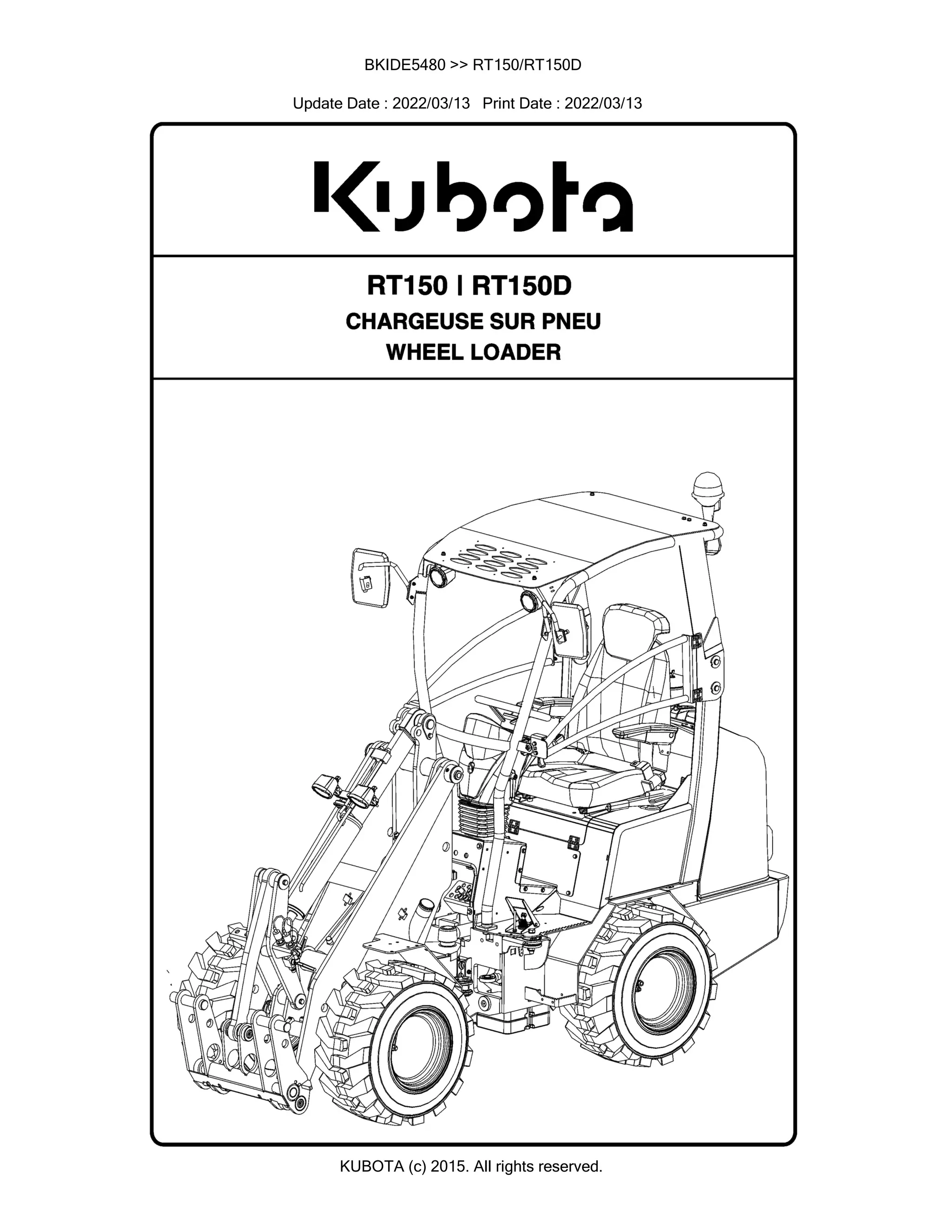 Kubota RT150D Wheel Loader Parts Catalogue Manual (Publishing ID