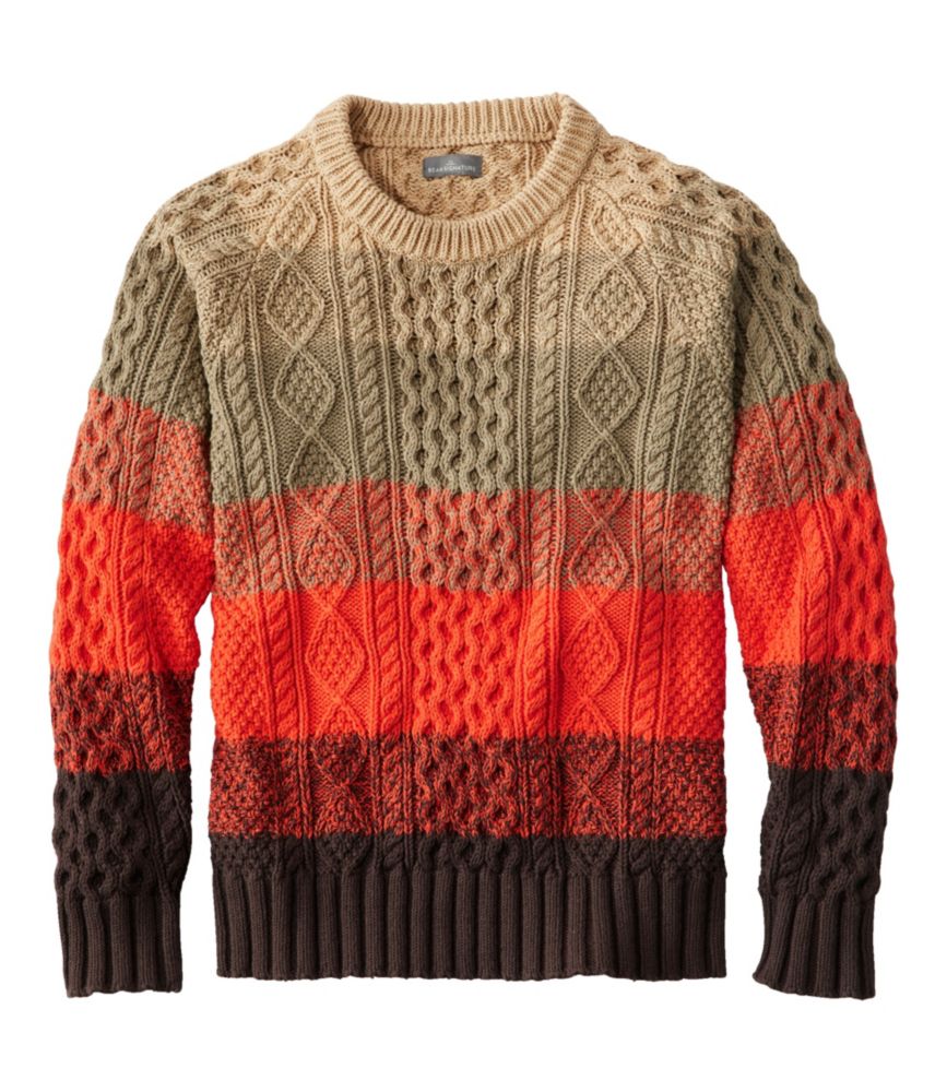 Men's Signature Cotton Fisherman Sweater, Yoke Crewneck Sweaters at L