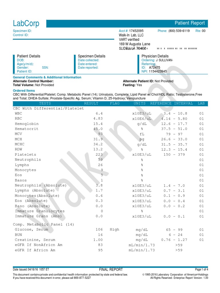 Labcorp Patient Report PDF High Density Lipoprotein Prostate