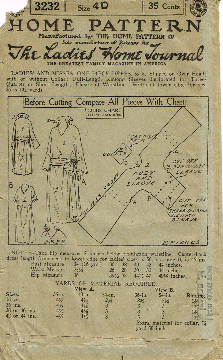 Ladies Home Journal 3232 1920s Uncut Plus Size Dress 40B Vintage Sewi