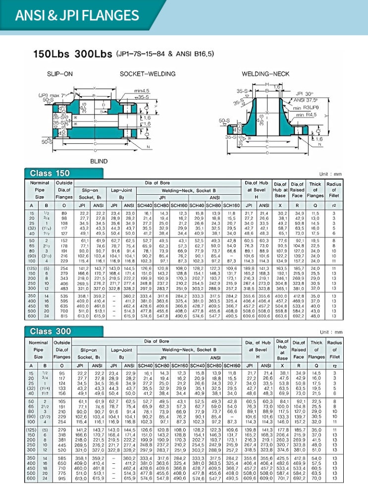 FLANGE 규격표 ANSI & JPI 네이버 블로그