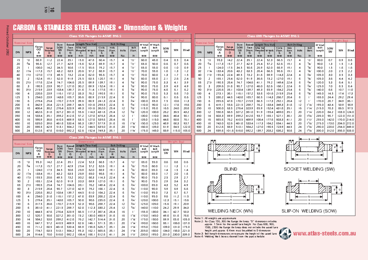 Carbon steel flanges dimensions and weights ATLAS STEELS METALS atlas