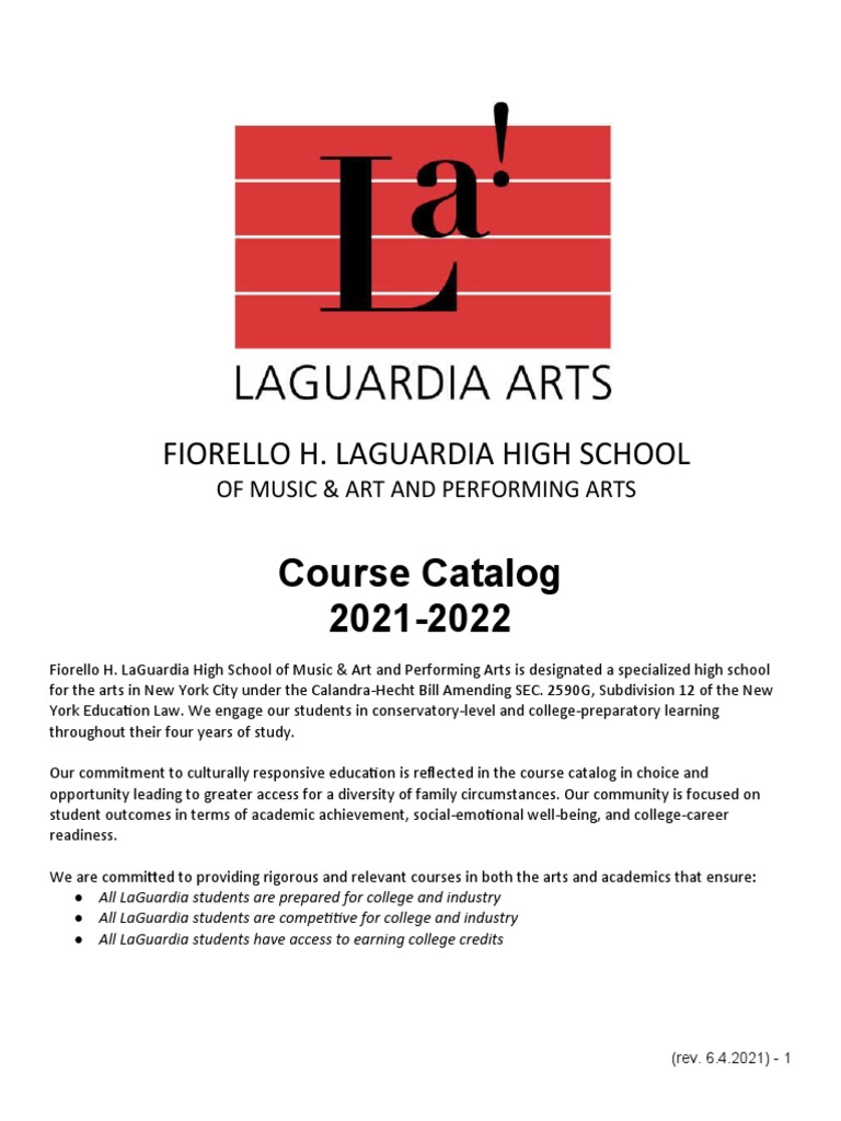 LaGuardia High School NYC Course Catalog 20212022 PDF Drawing Acting