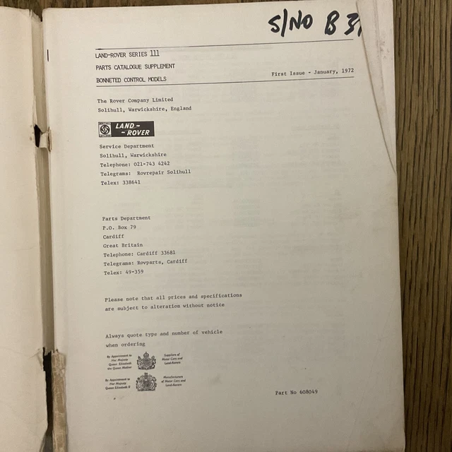 Documentation Land Rover Series III parts catalogue 1978 Catawiki
