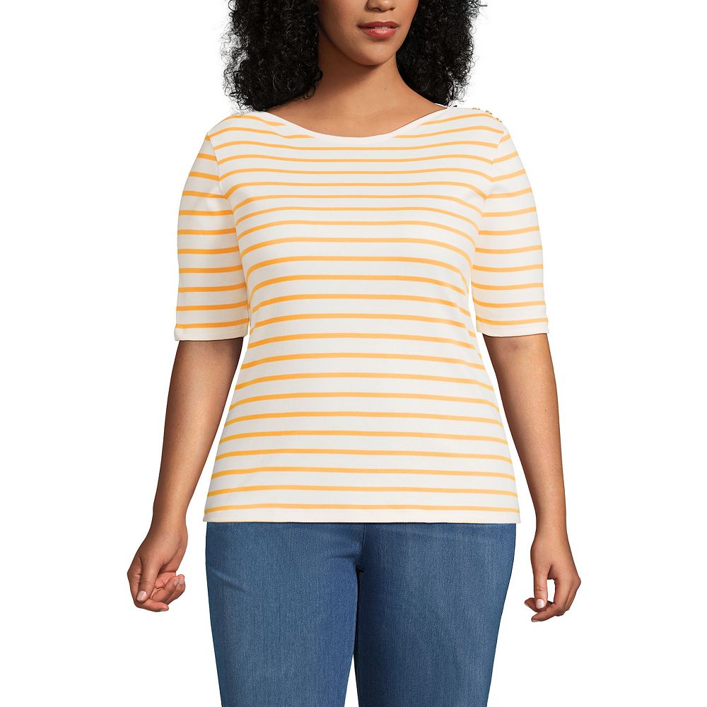 Plus Size Lands' End Elbow Sleeve Boatneck Button Shoulder Tee