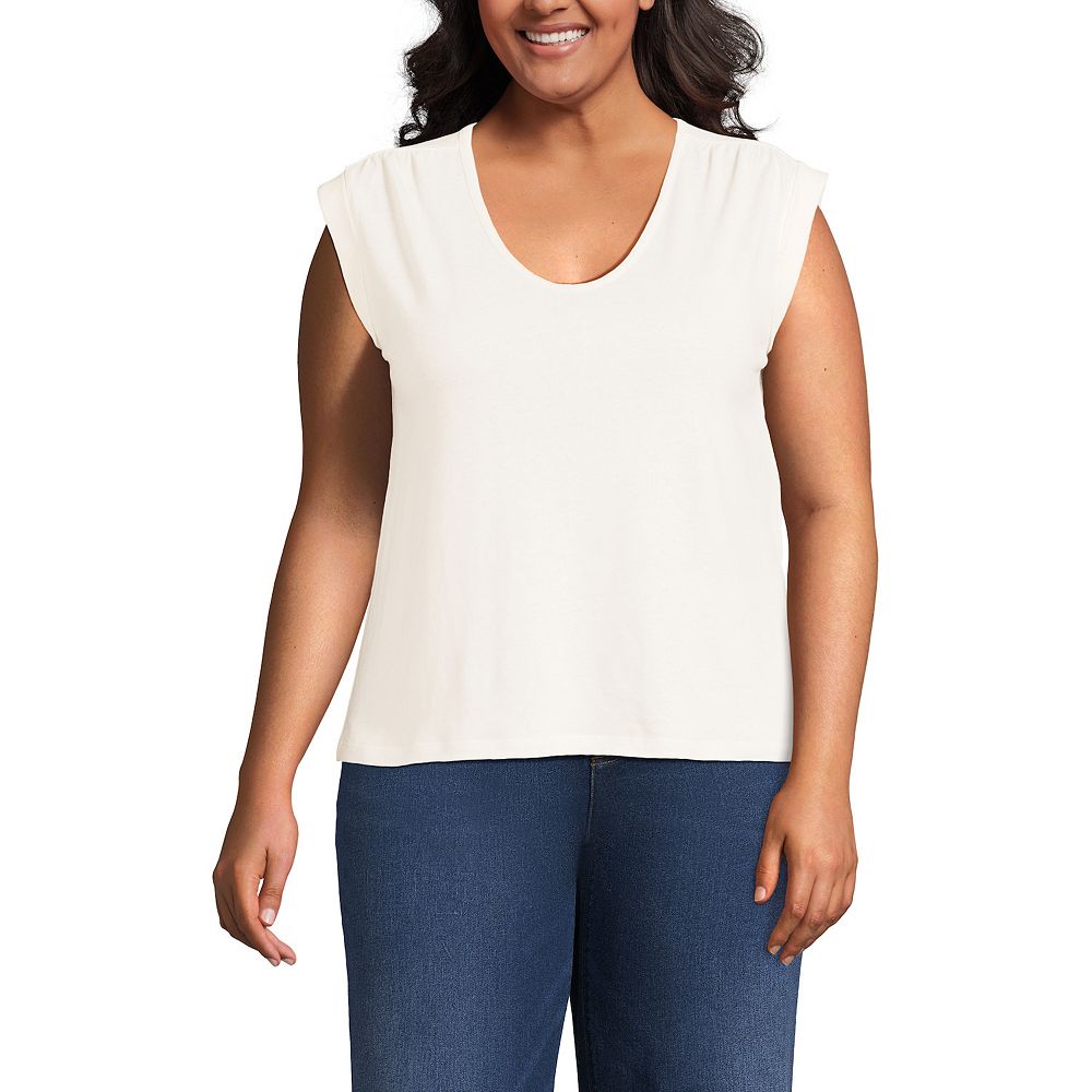 Plus Size Lands' End Cap Sleeve Gathered Shoulder Tee