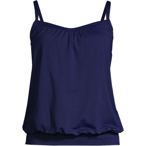 Lands' End Women's Blouson Tummy Hiding Tankini Swimsuit Top Adjustable