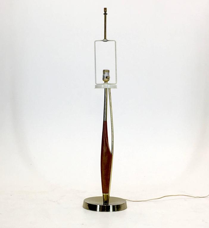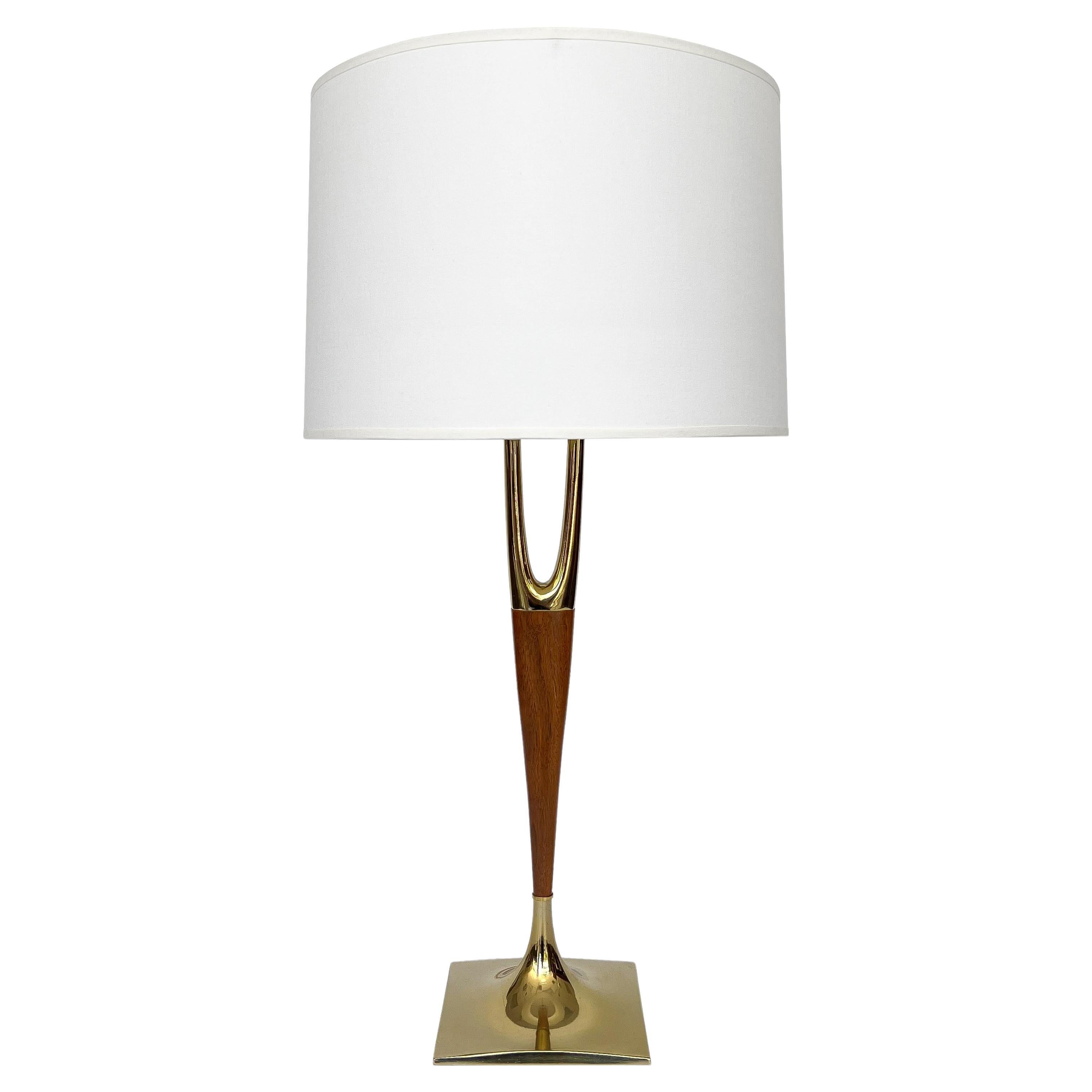 Laurel Lamp Company Wishbone Brass and Walnut Table Lamp at 1stDibs