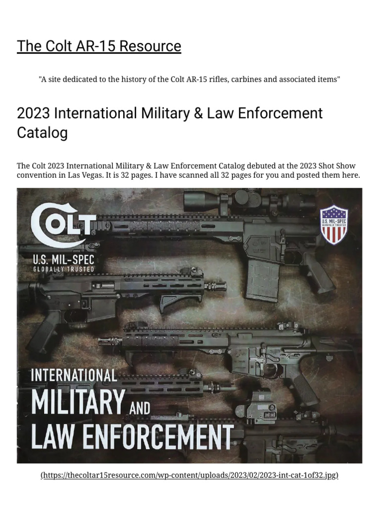 Colt 2023 International Military & Law Enforcement Catalog PDF