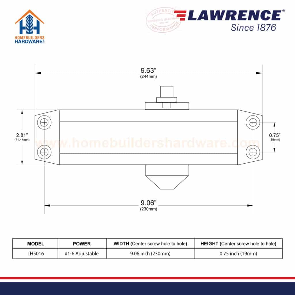 Door Closer, Medium/Heavy Duty Commercial, Lawrence Hardware LH5016