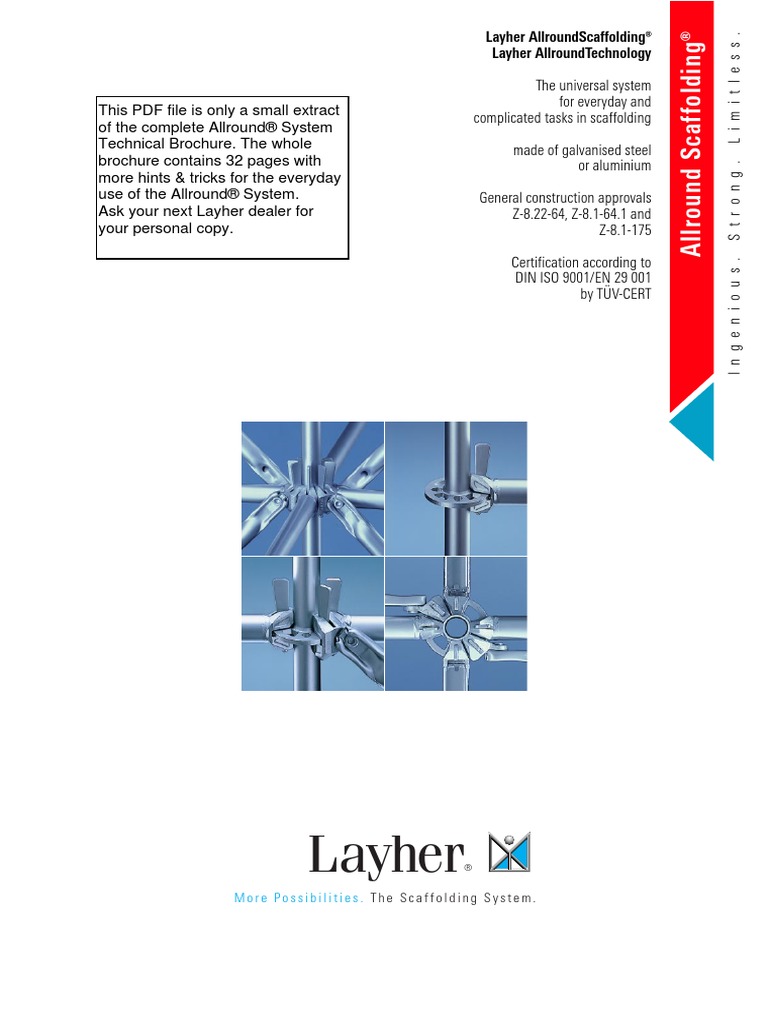 Brochures catalogues and downloads Layher. The Scaffolding System.