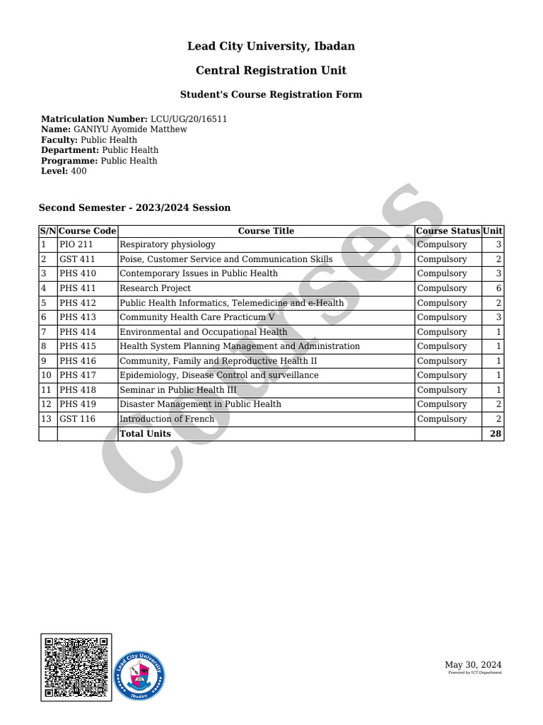 Course Form LCU UG 20 16511 PDF Public Health Social Programs