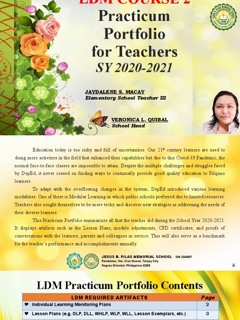 LDM 2 Course For Teachers Practicum Portfolio PDF Teachers Learning