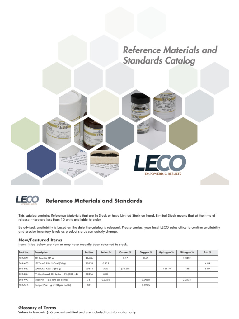 Leco Reference Materials Standards Catalog 209296 PDF Iron Oxide