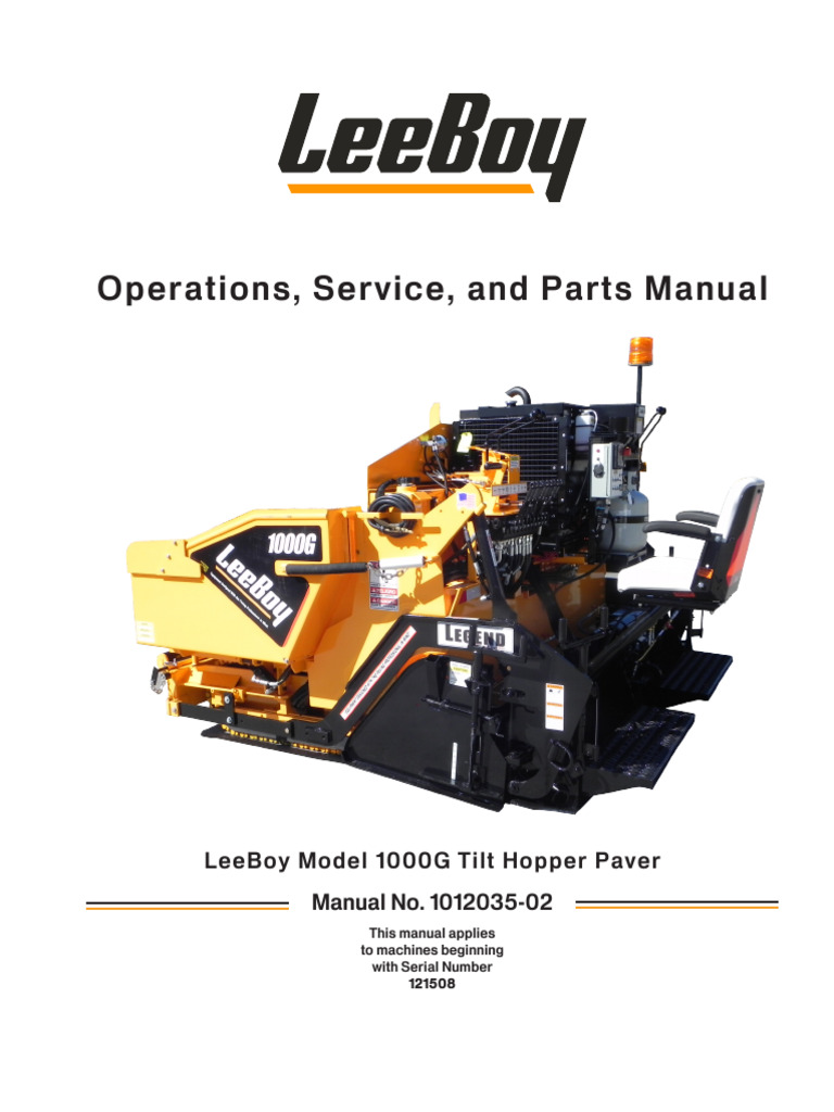 LeeBoy 1000D Tilt Hopper Paver Operators Service and Parts Manual PDF