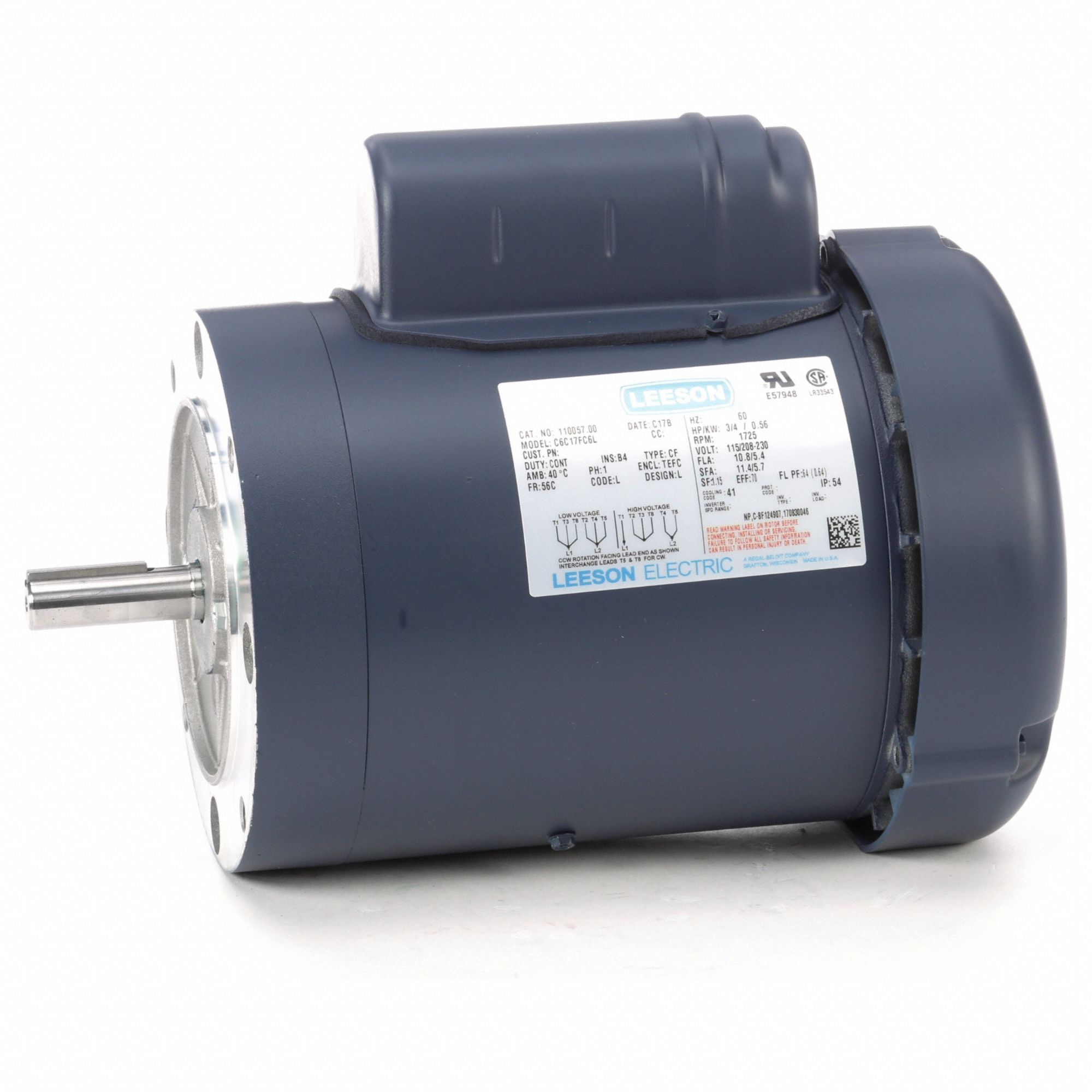 Leeson motor catalog 1100275.00. Model C6T11F83E. New with minor shelf